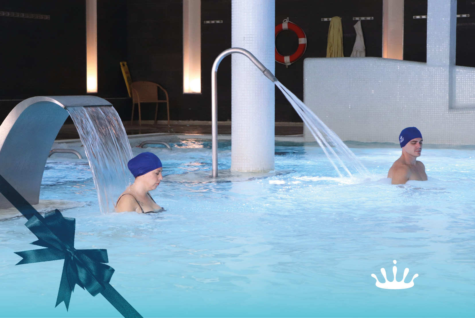Experiencia en pareja para relajarse en nuestras aguas termales durante 60 minutos en la piscina activa del Balneario de Trillo.